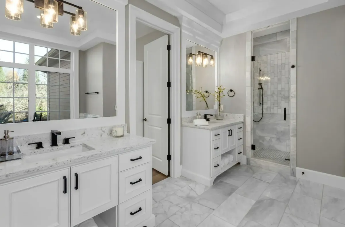 Upgrade your bathroom’s look and efficiency with modern lighting, faucets, mirrors, and other elegant finishing details.